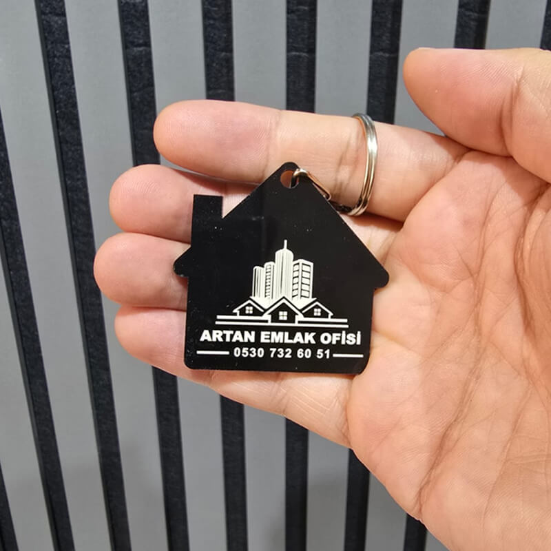Yeni bir ev alan bir müşteriye anahtar tesliminde, ev şeklinde logo baskılı bir anahtarlık vermek, hem profesyonelliğinizi hem de müşteri memnuniyetine verdiğiniz önemi gösterir.